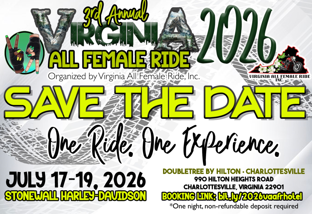 Click here to book your stay for the 2026 Virginia All Female Ride under our group rate!